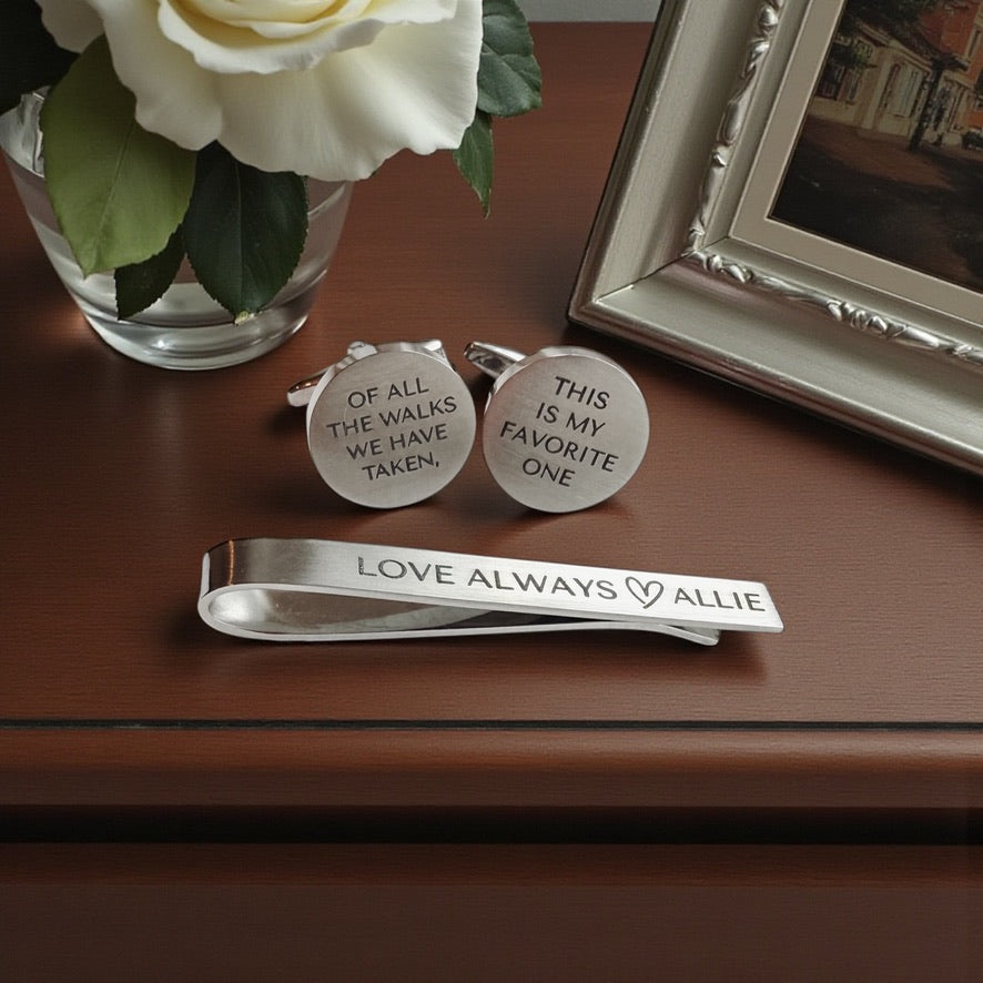 The craftsmanship is impeccable and engraving is crisp and precise. The materials are high quality, the chain feels sturdy yet lightweight, and it strikes a perfect balance between being elegant and understated.